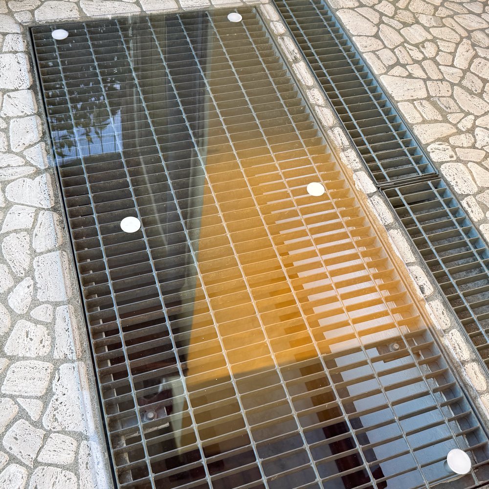 Paolo ha trovato una soluzione intelligente a un problema comune. Ha posizionato una lastra in policarbonato sopra la griglia del lucernario, assicurandosi che non potesse scivolare. Grazie a speciali piedini progettati per adattarsi perfettamente alle maglie della griglia, la copertura rimane sempre stabile. In questo modo si evita l’accumulo di pioggia, foglie e peli di cane, lasciando comunque filtrare a sufficienza la luce.